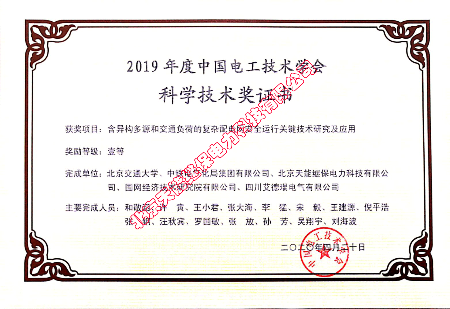 • 2019年度中國(guó)電工技術(shù)學(xué)會(huì)科學(xué)科技獎(jiǎng)證書