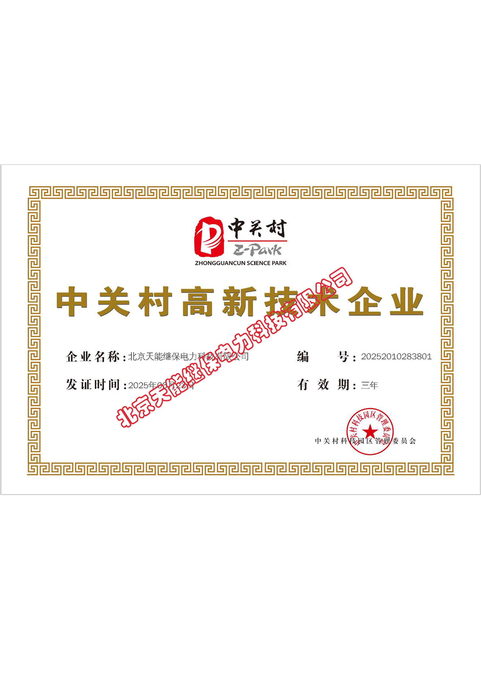 • 中關(guān)村高新技術(shù)企業(yè)證書